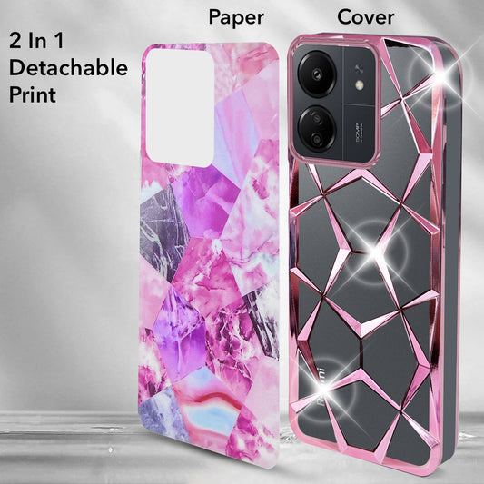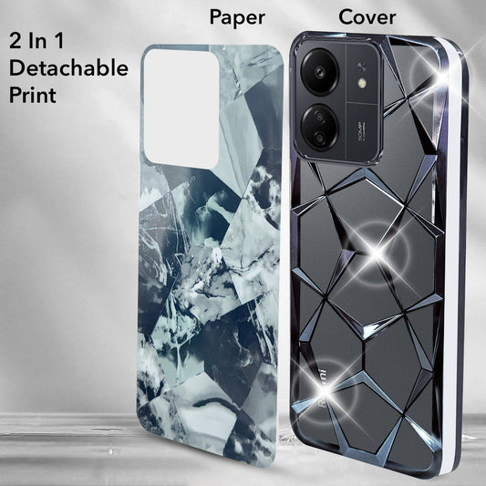Xiaomi Redmi 13C 4G Back Cover Case (Dual Design Glitter Sparkle and Detachable Diamond Print|(Soft and Flexible)