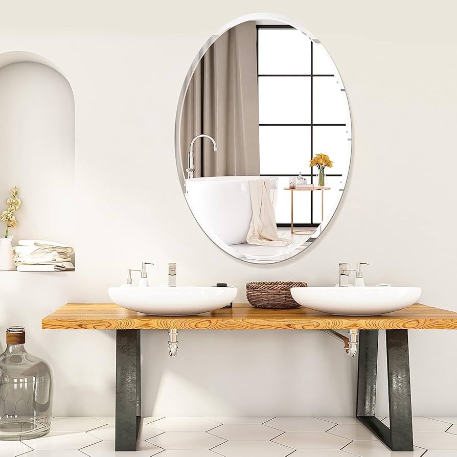 The sleek oval shape adds a modern, decorative touch while delivering a clear, distortion-free reflection for daily grooming and beauty routines.